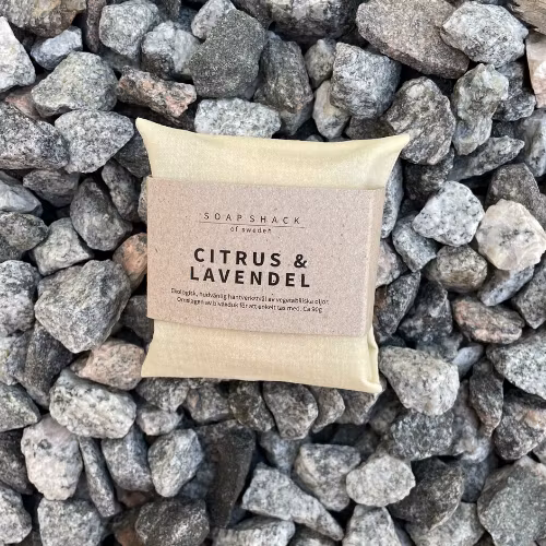 Tvålen CITRUS & LAVENDEL har en blommig fräsch doft lavendel och citrus med färg av ekologisk rosa lera. Basen är ekologisk rapsolja, kokosolja och ricinolja. Inga fler tillsatser finns i tvålen.