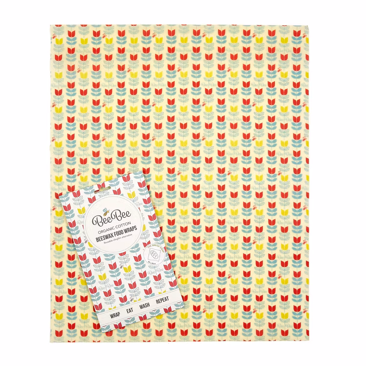 Stor bivaxduk som mäter 55 cm x 45 cm. Inte bara perfekt för att förpacka bröd i utan också för att täck exempelvis rester som svalnar på en bakplåt. Retro tulp