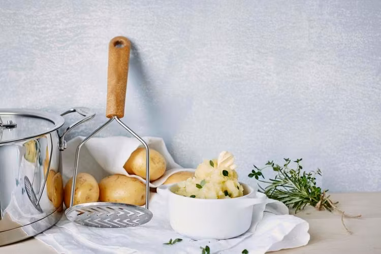 Purépress från GastroMAx som är idealisk för att mosa kokt potatis och rotfrukter med. Handtaget är tillverkat av biobaserad plast, en blandning av sockerrör och träfiber från nordisk gran. Upp till 60% mindre koldioxidavtryck från handtaget än liknande produkt av traditionell plast. Slitstarkt rostfritt stålblad.