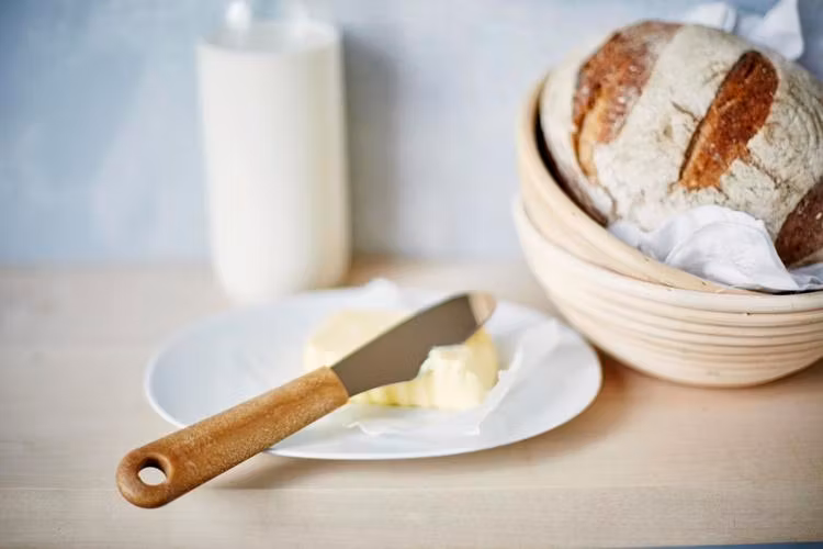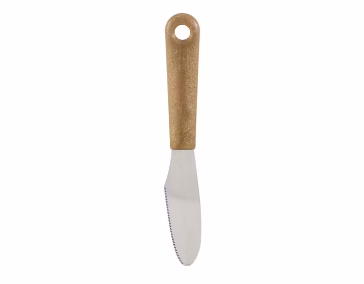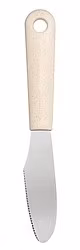 Smörkniv eller lilleman med handtag tillverkat av biobaserad plast, en blandning av sockerrör och träfiber från nordisk gran. Upp till 60% mindre koldioxidavtryck från handtaget än liknande produkt av traditionell plast. Flexibelt rostfritt stålblad med en tandad kant för skärning, perfekt vid exemeplvis brödbak.
