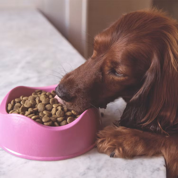 Miljövänlig och hållbar hundmatskål gjord av växtfibrer från bambu och risskal.