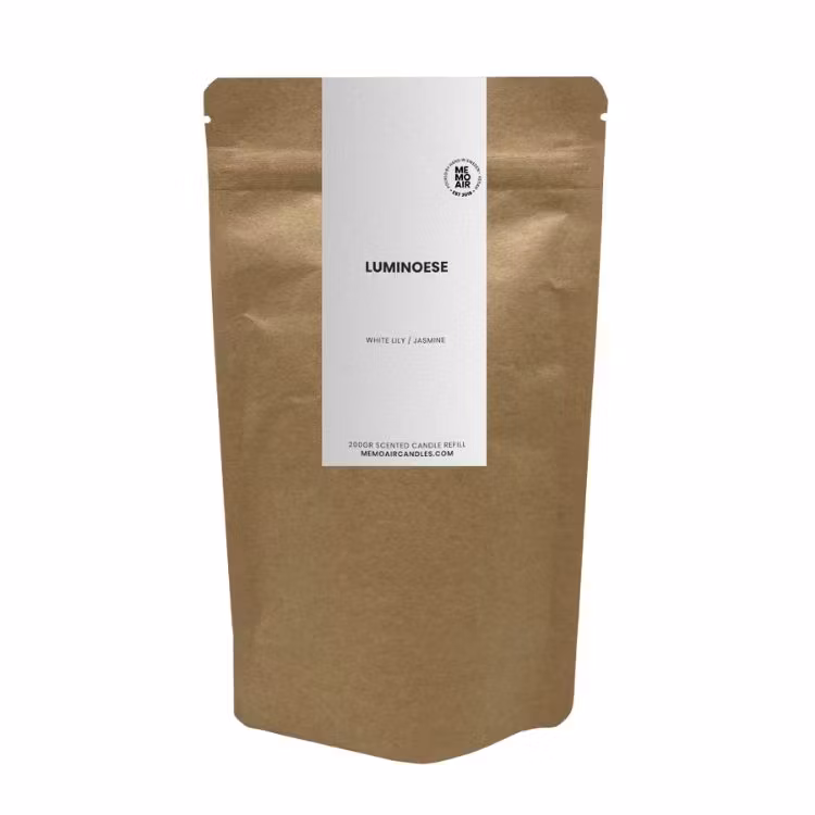 Smart refill förpackning för doftljus. Refillen räcker till ett stort ljus och innehåller vecke och instruktion. Du kan fylla på din ljuskopp från Memoair eller om du har en egen kopp du gillar.