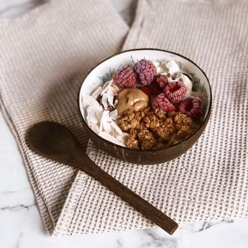 Cocobols otroligt vackra och unika kokosskålar. Skålarna är handgjorda och har en polerad utsida och lackad insida. Alla skålarna har ett unikt utseende och form tack vare att de är gjorda av naturliga kokosnötter.