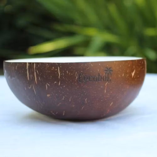 Otroligt vacker och unik kokosskål. Skålarna är handgjorda och har en polerad utsida och vit lackad insida. Alla skålarna har ett unikt utseende och form tack vare att de är gjorda av naturliga kokosnötter.